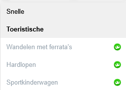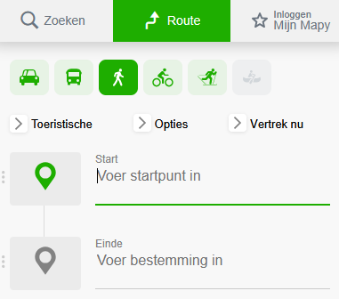 Klik op Toeristische en/of opties" en geef de "manier" van lopen op.