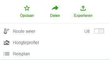 Als je klikt op Export (of Exporteren, rechter icoon) komt de route als GPX bestand te staan in de map Downloads onder de naam: export, export(1), export(2) enz.